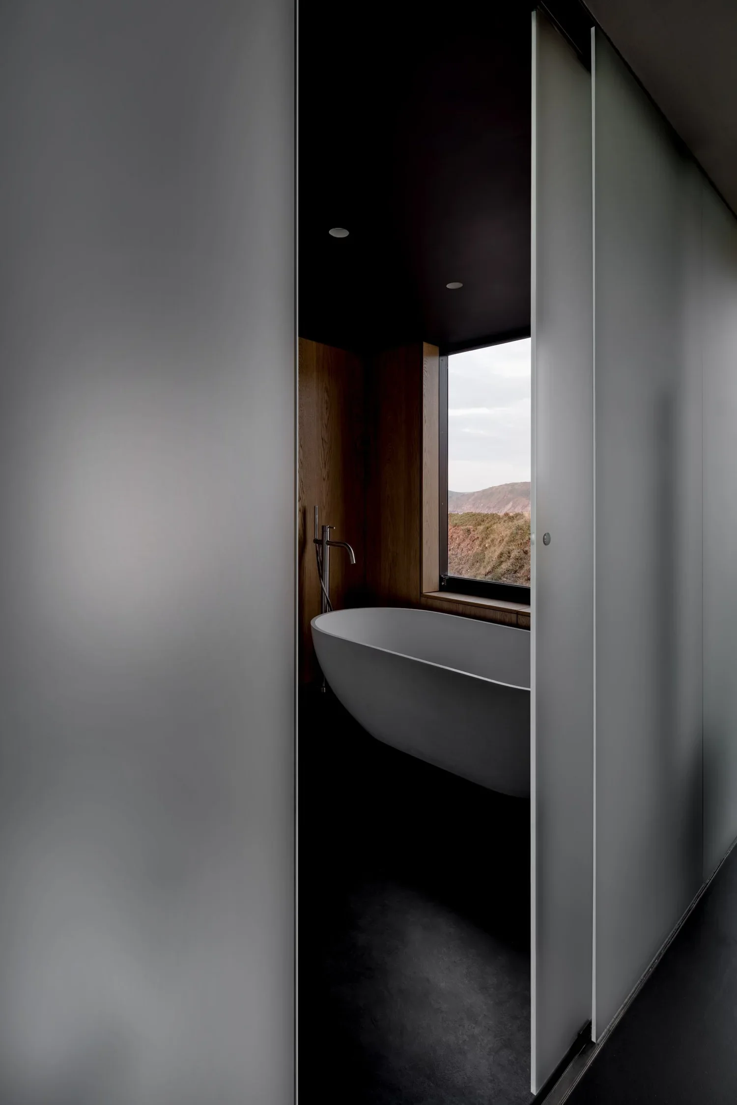 The ground floor rooms are embedded in concrete. Those walls continue the conversation of the foundations that anchor the home to this edge. The mass cancels the noise of storms and gives the spaces a presence that has to be experienced, not explained. You do not just see these rooms. You feel them, you really do.