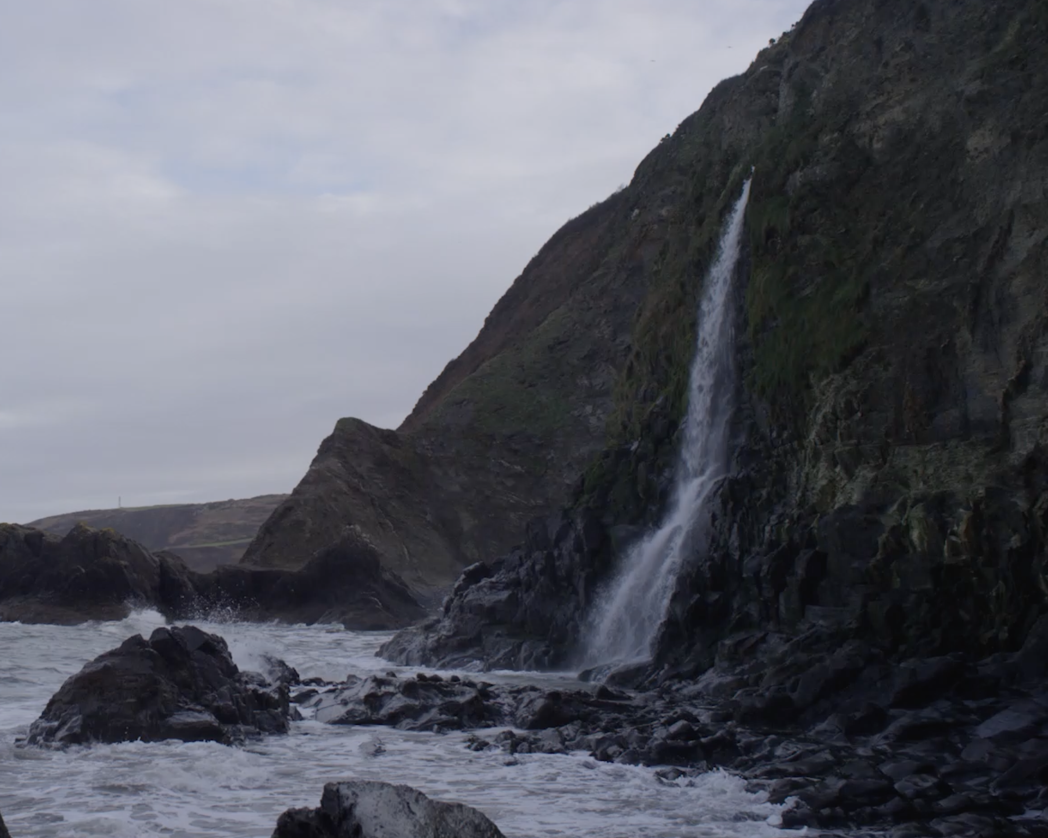 We were out on the headland, standing on the site with the full sweep of it around us. There were 180 degrees of ocean in front of us and 180 degrees of Wales behind us. We asked Jane to point to where her memories lived in that landscape. She did not gesture to the grand view before us of the Irish Sea at first. She pointed down to a sandy beach beneath what would become a key reference point. In this bay, she recalled building sandcastles as a child. Then she turned to the north east and spoke about a waterfall where she used to play.